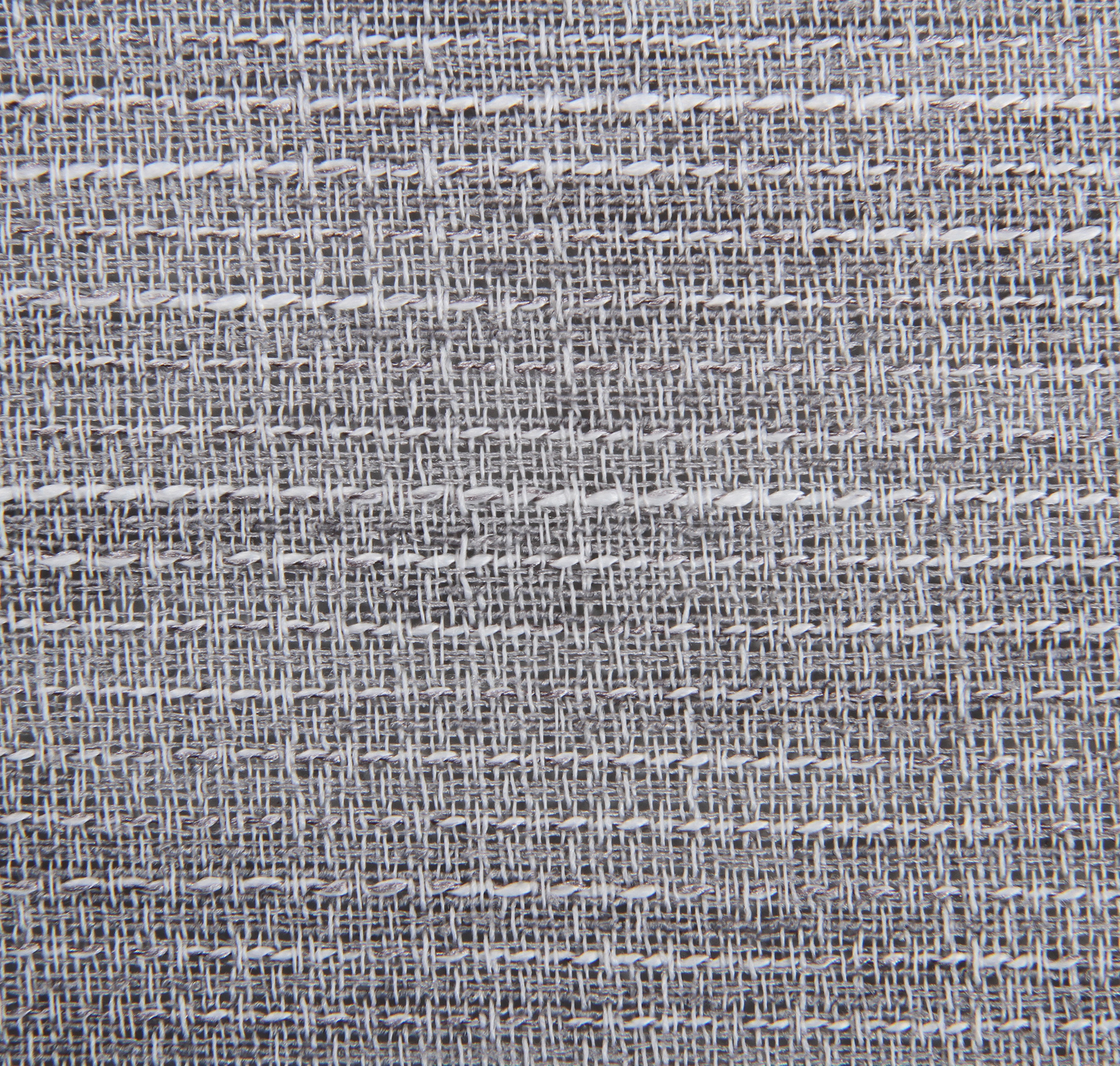 The fabric features a structured, grid-like pattern with prominent horizontal “slubs” in white and ivory. This creates a rhythmic, organic feel that adds depth to large furniture pieces without overwhelming the room’s decor. Its neutral palette ensures it pairs effortlessly with both vibrant accent colors and muted, monochromatic schemes.